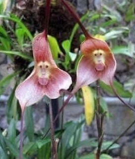 写真の花は、南米高地に分布するランの仲間でモンキー(フェイス)・オーッキッドと呼ばれる植物です。怒ったり、悲しんだりしている表情が様々で面白いですね。